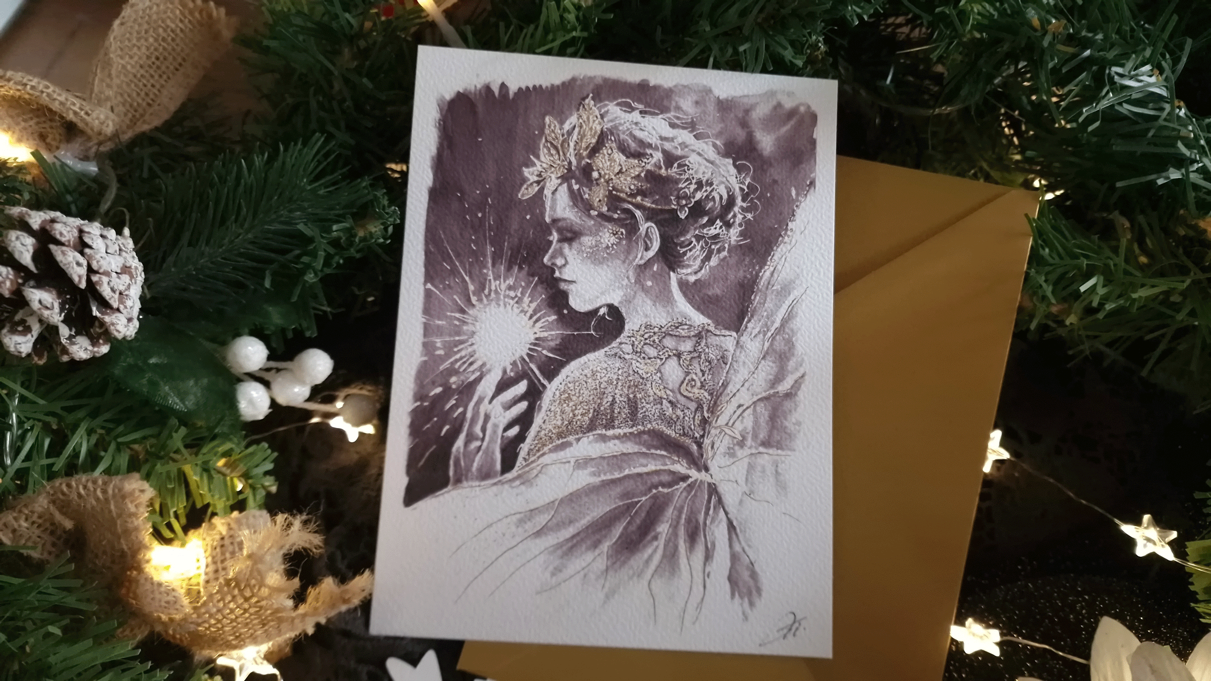 Cette carte postale fait partie de la Collection « Noël 2025 » de la boutique ROSANA, qui sont au nombre de trois : « Nuit de lumière », « Douce Nuit » et « Merveilleux Noël ».