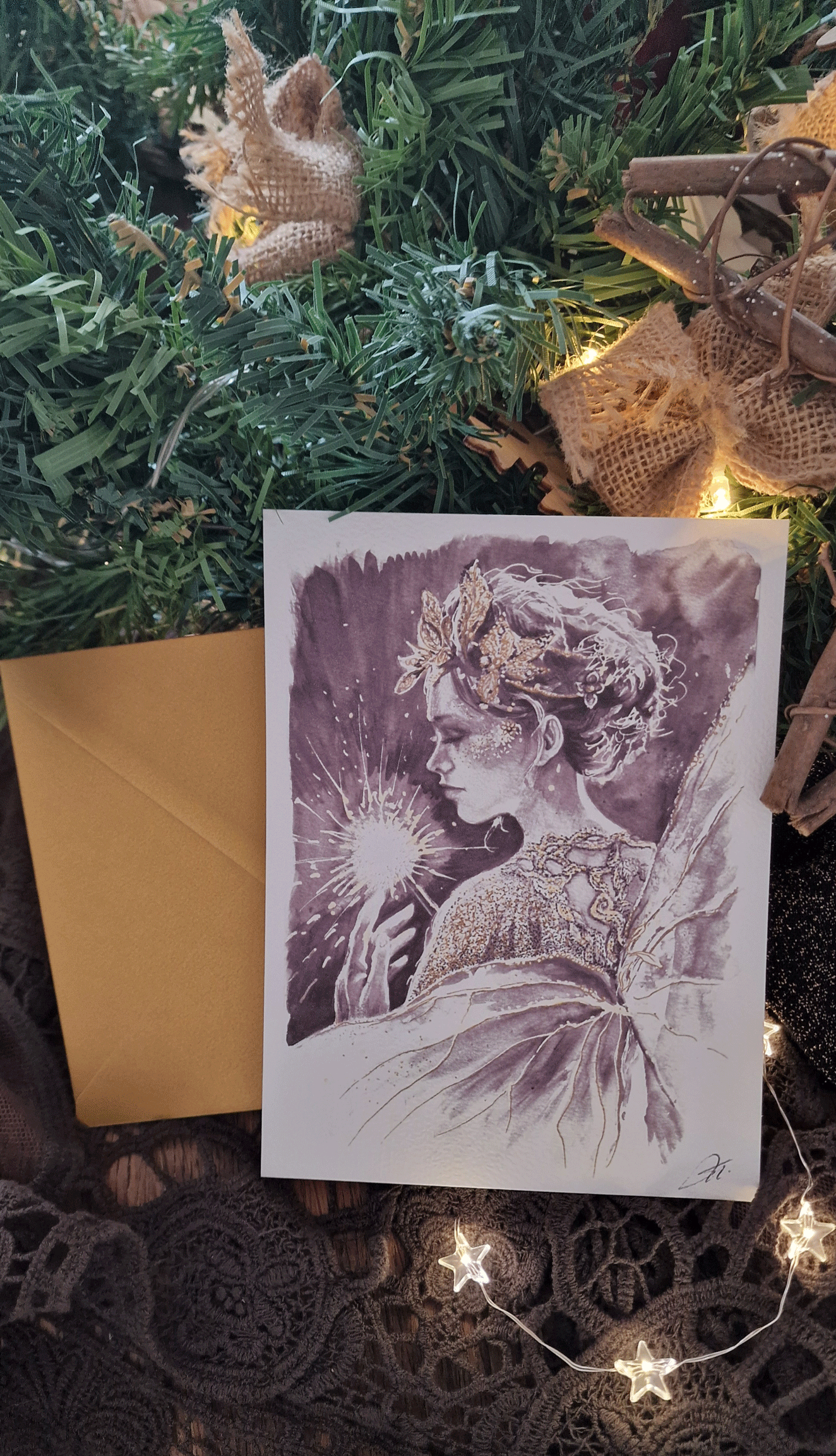 Un gracieux profil à la fois ange et fée, plein de douceur, porteur d’une magnifique étincelle, annonce la magie de la plus belle nuit de l’année.